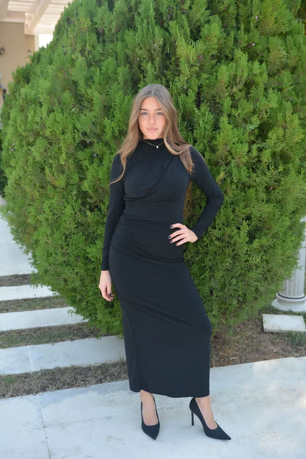 שמלת נואל שחורה בעיצוב אלגנטי ומחטב.