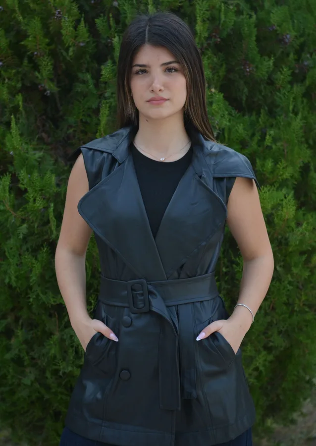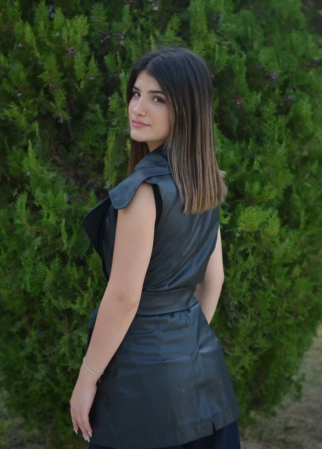 ג׳קט וסט שוהם בגוון שחור דמוי עור