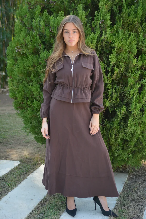 חליפת קלואה בגוון חום.